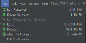 3. Django 프로젝트 생성 및 서버실행(Run) 설정