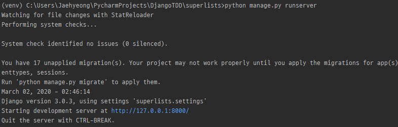 3.2 기본 Django 서버 구동 방법